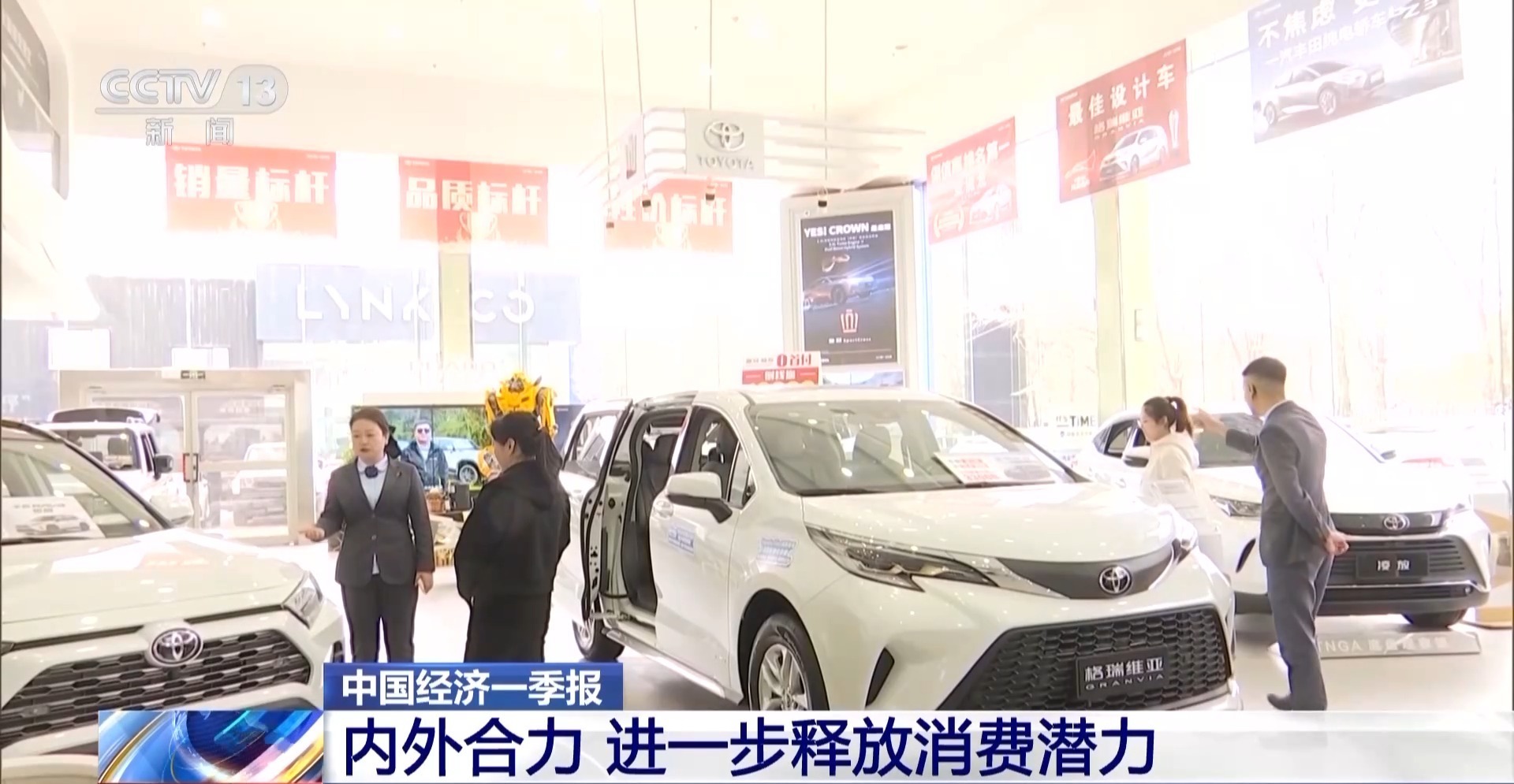 国家发展改革委国家信息中心宏观经济研究室副主任 邹蕴涵:整个一季度的消费保持了比较良好的态势,它有个非常突出的特征,是内外合力。内,就是指消费的内生增长动力,服务消费增长比较快,成为拉动消费的主要动力。外,是指政策发力,也就是今年消费品以旧换新的加力支持政策,推出早、时机准、见效快、效果也比较持久,对于整个支撑社会消费品零售总额的增长,发挥了非常重要的作用,进一步释放了消费的潜力。