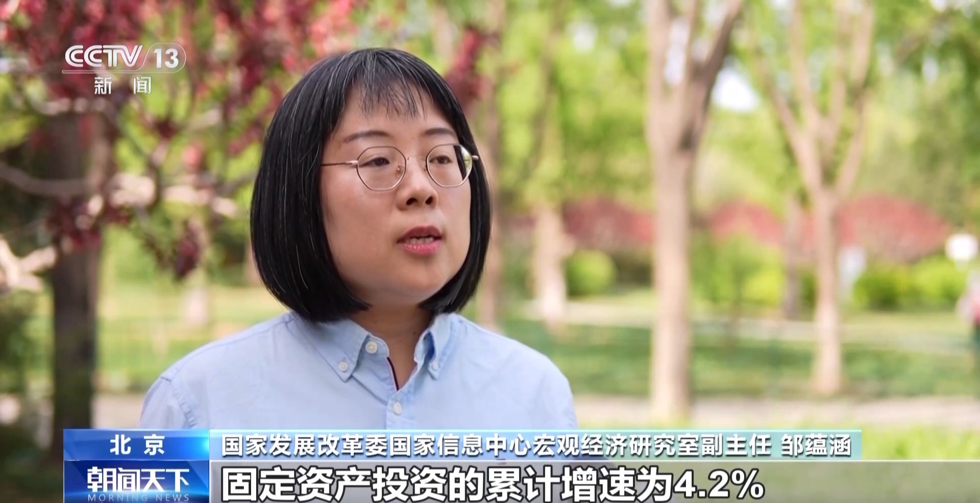 国家发展改革委国家信息中心宏观经济研究室副主任 邹蕴涵:今年一季度,固定资产投资的累计增速达到4.2%,其中大规模设备更新政策起到非常好的支撑作用,设备工器具投资对于带动整个投资发挥了非常关键的作用。