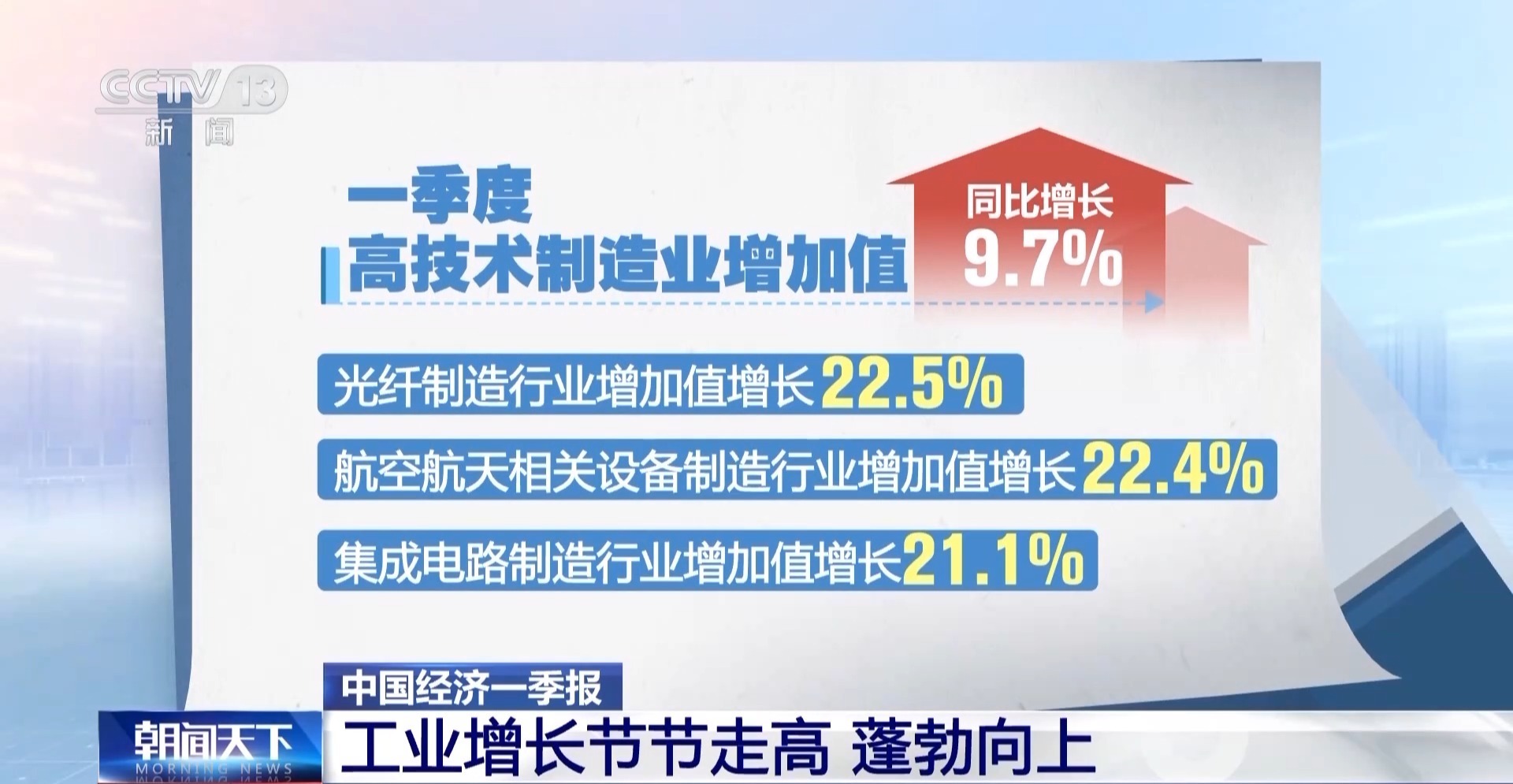 专家表示,今年一季度,高技术制造业的增长达到了2022年6月以来累计增速的新高点,展现出了非常好的一个增长态势。